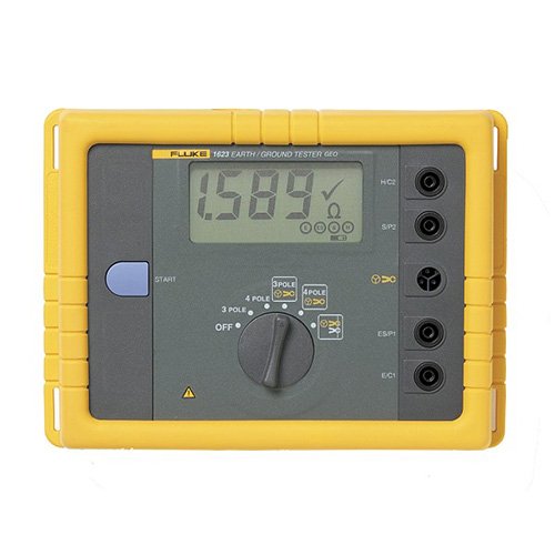 The Fluke 1623 GEO Earth Ground Tester is a distinctive earth ground testers that can perform all four types of earth ground measurement. Specifically, the Fluke 1623 is able to measure earth ground loop resistances using only clamps – called Stakeless testing. This method doesn't require the use of earth ground stakes or the disconnection of ground rods.