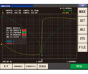 Measurement items: L1 (Inductance), C1 (Capacitance), R1 (Resistance), Qm (Resonance sharpness),