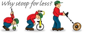 We have evolved from the stooping position, so why use a measuring tool with a distance display down by the wheel?