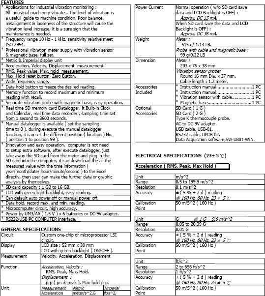 • Datalogging Vibration Meters/Vibration dataloggers