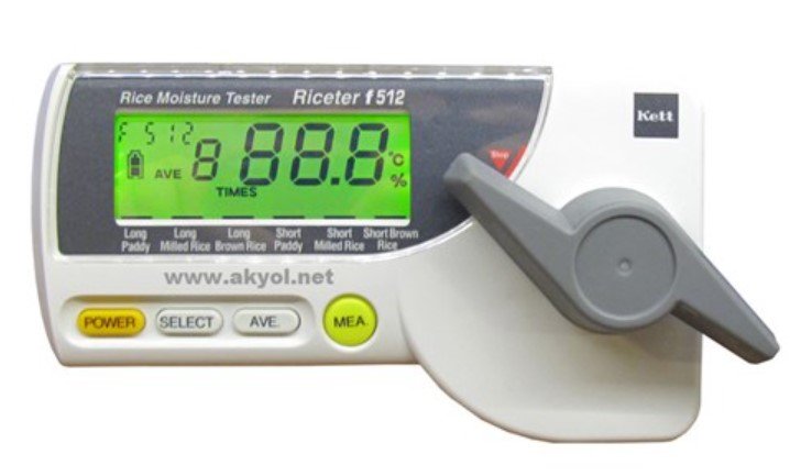 Riceter F512 digitally measures moisture contents of different rice. These are long paddy, long milled rice, long brown rice, short paddy, short milled rice and short brown rice.