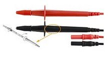 ● The spring-shrouded 4mm brass caged banana probe tip.