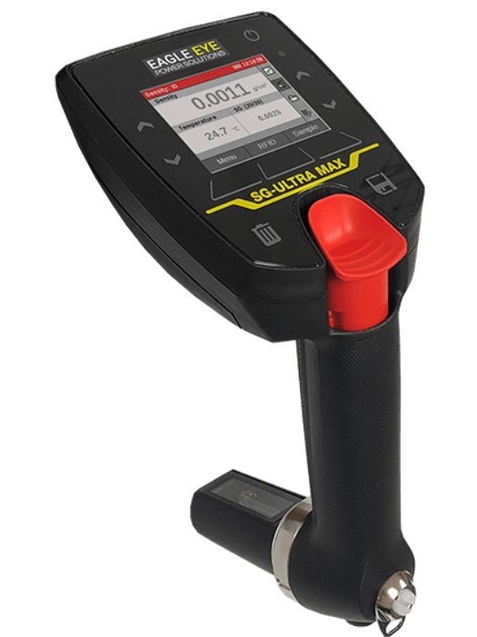 • The SG-Ultra Max Digital Battery Hydrometer, Density Meter measures the density and density-related values almost instantaneously. Results appear on the backlit LCD screen – ready for storage, printout, or export to a PC. The lightweight and robust design enable on-site operation in a wide range of environments.