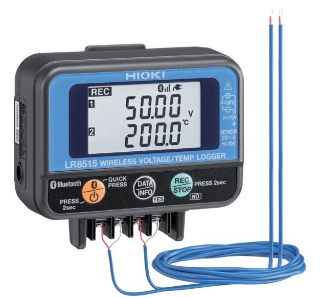 Hioki Memory HiLoggers are high-speed data loggers for recording multiple channels of voltage, temperature, resistance or humidity signals, some models providing complete isolation between channels and strong noise resistance. The Hioki LR8515 Wireless Voltage/Temperature Logger provides easy, wireless collection of a variety of data types, including voltage input and thermocouple types K and T, all in a single device.