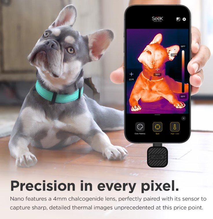 • HIGH RESOLUTION THERMAL IMAGER: Experience superior imaging with the Seek Thermal Nano, featuring smooth operation at over 25Hz and detailed 320 x 240 resolution for clearer, more precise thermal images. Enhance your analysis and decision-making by comparing thermal images directly alongside your smartphone’s visual camera output.