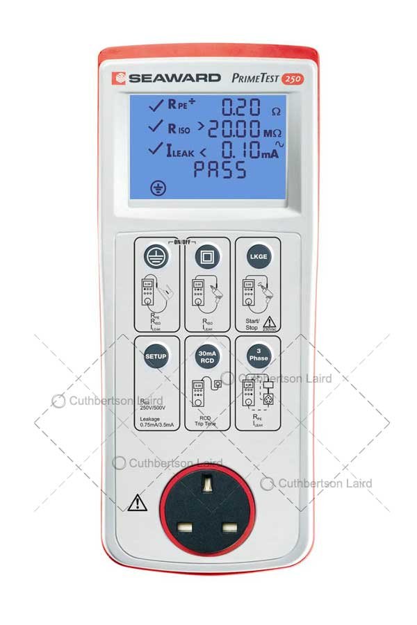 The hand-held Primetest 250 provides all the electrical tests required for compliance with the IEE Code of Practice for the In-Service Inspection and Testing of Electrical Equipment. NB. For 3 phase and RCD testing, accessories are required.