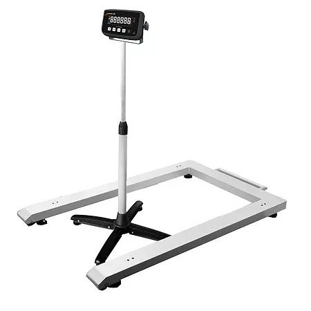 Thanks to the long connection cable, the display unit can also be placed at a greater distance from the weighing surface, on a tripod, on a wall or on a table. The pallet beam has wheels and a carrying handle for easy transport. The plug connection of the connection cable can be easily removed for transport.