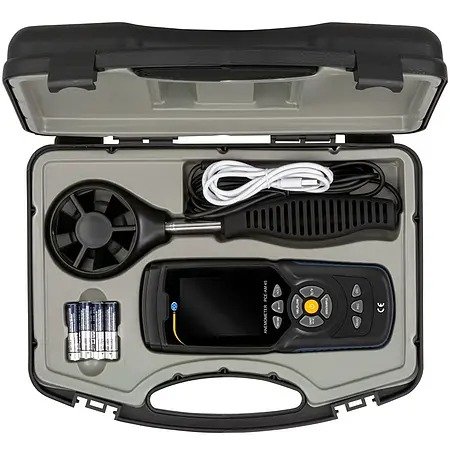 Depending on the orientation of the impeller, the air flow / temperature / humidity data logger can also be used to determine the wind direction. This is made possible by the anemometer's built-in gyroscope. At the same time, the current ambient temperature between 0 … 45 °C / 32 ... 113 °F is displayed on the anemometer. For optimal alignment, the telescopic arm of the anemometer can be extended up to 315 mm / 12.4".