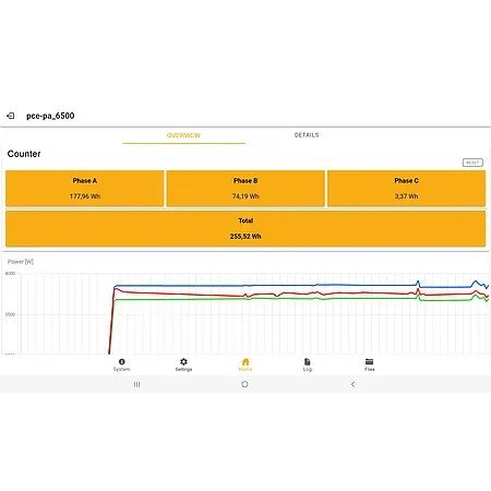 Alternatively (if no internet connection is available), the data can be recorded in the built-in 32 GB flash memory in the form of a CSV file for further processing at a later date. An SD card adaptor is also available as an accessory, which means that the recording duration is more than one year, even when recording to the second. It is also possible to send the CSV files periodically by e-mail, upload them to a server via FTP or transfer them to the measurement platform once the measurement has been completed. Interaction with the Power Quality Analyser / Power Analyzer is mainly via Wi-Fi and web browser or via app (BLE).