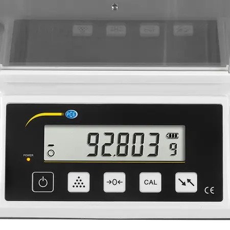 Analytical balance scale with piece counting function / Usable batteries for mobile operation / RS-232 interface / Level for aligning the scale / For mobile use