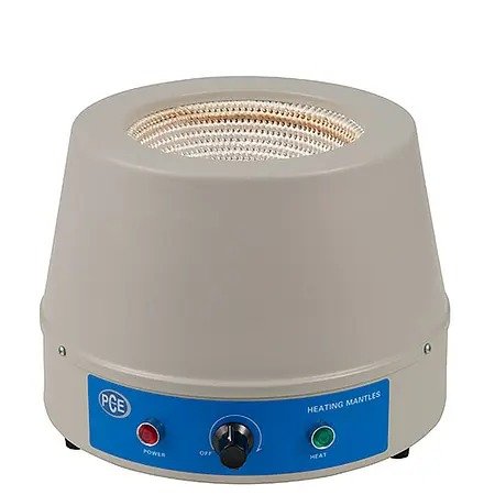 The heating mantle PCE-HM 250 is an auxiliary device that is used in laboratories. The heating mantle helps you to heat or temper various samples or chemicals in the laboratory. The device is equipped with a crocheted net inside, in which the heating mantle can be placed in order to heat it up. The round-bottom flask is a typical shape of the glass containers that are placed into the heating mantle.
