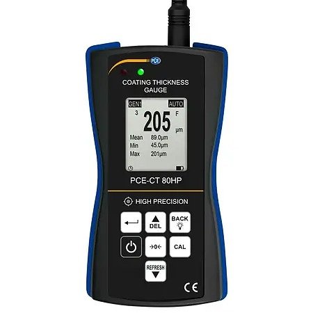 For a special protection of the electronics, the housing of the coating thickness gauge is additionally rubberized. Optionally, the coating thickness gauge can be equipped with an ISO calibration certificate.
