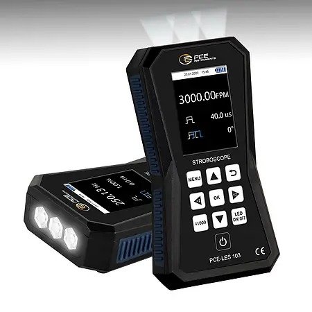 Motion analysis of rotating machines is quick and easy with our stroboscope. The stroboscope is equipped with 3 high-power LEDs, which together generate a light intensity of 11730 lux at 20 cm / 1000 Hz. With the stroboscope, you can precisely set the flash frequency in both FPM and Hz. It is also small, handy and mains-independent thanks to the rechargeable battery.