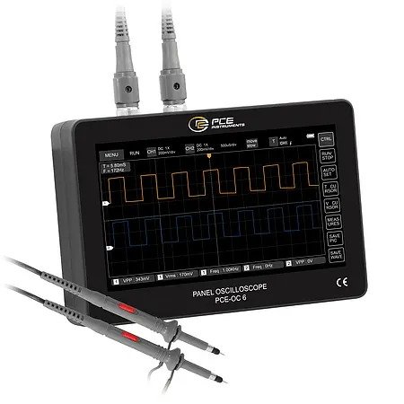 This modern Oscilloscope impresses with a real-time sampling rate of up to 1 GSa/s and an analogue bandwidth of 100 MHz per channel. It is ideal for the precise acquisition of both periodic analogue and aperiodic digital signals. Thanks to the 7-inch colour TFT LCD touchscreen with a resolution of 800 × 480 pixels, the Oscilloscope can be operated intuitively. The slim and lightweight design makes it particularly mobile and flexible to use.