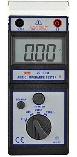 ● True measurement of speaker systems actual impedance at 1kHz. ● Three test ranges (20Ω / 200Ω / 2000Ω) allow testing of home theater and commercial sound systems. ● Measures transformer impedances. ● Battery operated. ● Low battery indication. ● Data hold function. ● Timer function for continuous hands free operation. ● The timer can last about 3-5 minutes when users press. ● TEST ON/OFF button.