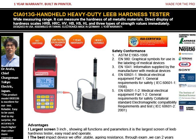 CIA013G-COMPLETE LARGE SCREEN LEEB HARDNESS TESTER W PRINTER/USB SOFTWARE/MENU DISPLAYWell done, KKInstruments!