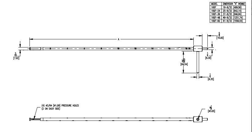 | DWY010-160F-24 | Straight stainless steel pitot tube, 24" 65cm |