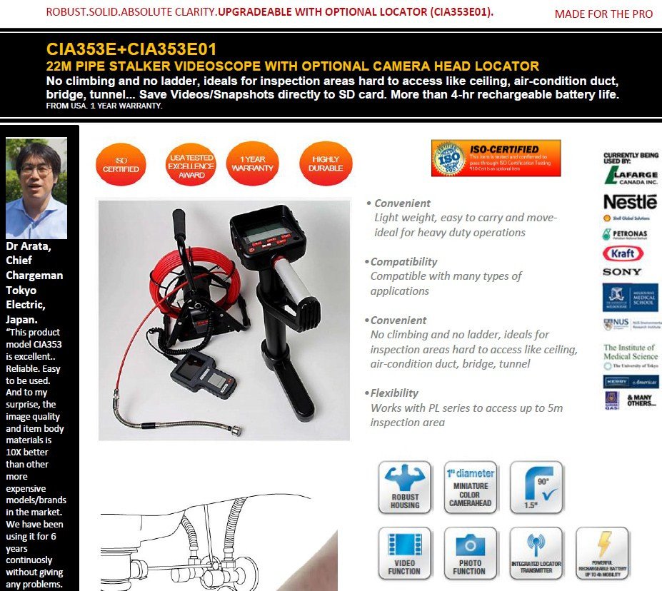 You are here: Home Products By Brands Inspection Cameras/Borescopes/VideoScopes/FiberScopes CIA353E + CIA353E01 - 22M PIPE STALKER WITH OPTIONAL CAMERA HEAD LOCATOR - LATEST