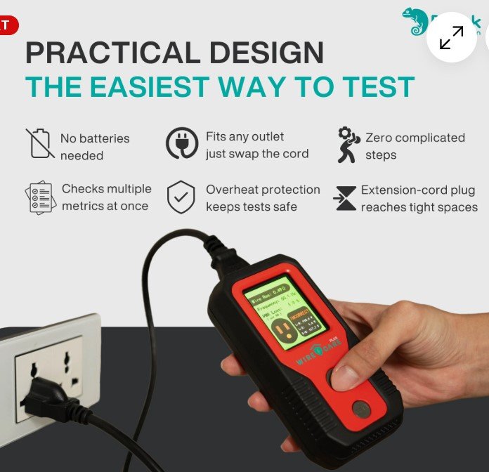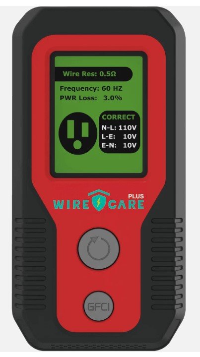 - Wirecare Plus handheld device provides real time alert for outlets hazards, GFCI testing and more