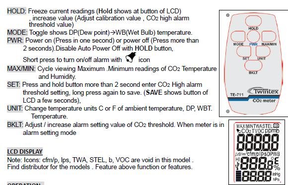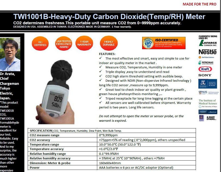 SPECIFICATION CO2,Temperature, Humidity. Dew Point, Wet Bulb Temp.