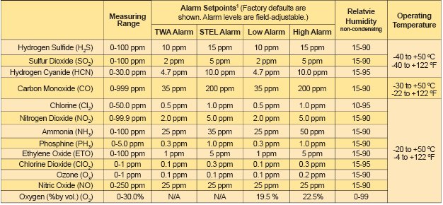 · Monitors any of 13 toxic gases or oxygen