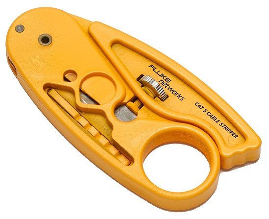 Fluke Networks offers a variety of cable strippers and cutters for coaxial cables, UTP/STP telephone and data cables and other flexible cables. Telephone installers use the Double Slotted cable stripper for 22/24 AWG wire installation. Use our Coax Stripper to perform 2-level and 3-level stripping of RG58/59 coaxial cables. Our Cable Stripper has an adjustable blade depth to "score" without damaging shielding and conductors. And, our Combo Stripper is a highly versatile tool that quickly cuts and rings Teflon, smoothly slits fiber, copper and coaxial cables, and rings 25-100 pair cable without nicking the conductor.