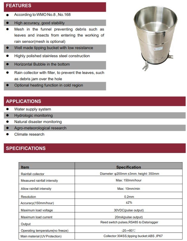 You are here: Home Products By Brands Rain gauge RKA003B - AUTOMATIC RAINFALL STATION W STAINLESS STEEL RAIN GAUGE, 3G/4G SMART CLOUD
