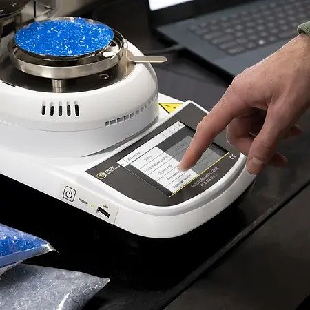 The precision moisture analyzer enables accurate and simple moisture determination in a wide range of materials. The sample is automatically weighed, dried and the weight loss is displayed as moisture content. This measuring principle does not require any time-consuming creation of characteristic curves and is immediately ready for use shortly after installation.