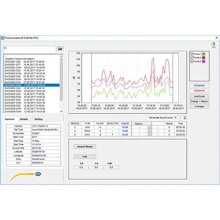 The meter has a large easy-to-read illuminated LCD screen that displays the sound pressure level (SPL) numerically and graphically in real time. Thanks to octave band filtering, even the slightest difference in frequency is detected. The handheld meter also functions as a data logger, recording measurements at an adjustable interval from 1 s ... 24 h and storing the recorded measurement data to a micro SD card memory. The SD card can be removed from the meter and inserted into the SD card reader of a PC. Alternatively, the decibel meter can be connected directly to a PC via USB. The provided PC-compatible software allows for quick and easy data analysis.