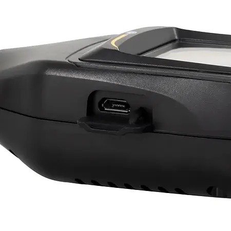The built-in 1500 mAh battery in the thermo hygrometer enables mobile use. To charge the battery, the air quality detector can be connected to a 5 VDC power supply via the micro-USB interface. The air quality detector can continue to be used during the charging process to take measurements. For an optimal and longer-lasting measurement of the air quality detector there is a 1/4 inch connection on the back. With this connection, the air quality detector can be attached to a tripod and aligned.