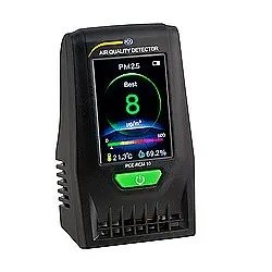 Portable handheld device for monitoring particulate matter (PM) concentrations in the air / 2.5 µm and 10 µm particle sizes / Measures air temperature and relative humidity