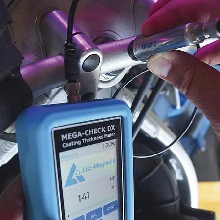 The newly developed digital probe technology enables extremely stable measurement values thanks to a high sampling rate. The measurement signals are digitized directly in the probe for interference-free and precise recording, which leads to particularly accurate and reproducible results. The magnetic induction method for the Thickness Gauge allows measurements of paint, varnish, plastic, rubber, ceramics, galvanization and galvanic coatings on steel. The eddy current method can be used to measure insulating coatings such as paint, varnish, plastic or anodized coatings on non-ferrous metals.