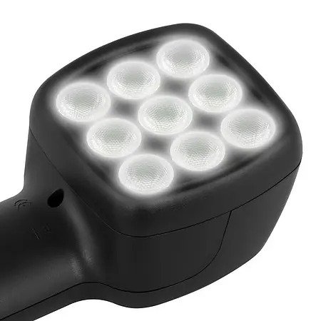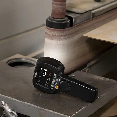 The rev counter utilises the so-called " stroboscope effect" to analyse fast movements, vibrations or periodic processes. With the help of 9 high-intensity LEDs, the speed measuring device generates short flashes of light with an illuminance of up to 1500 lx. These flashes of light are emitted in synchronisation with the frequency of the movement to be monitored until the object appears to stand still to the observer. The digital stroboscope allows the user to focus on specific phases or features of the movement in order to detect defects or irregularities in rotating or oscillating parts.