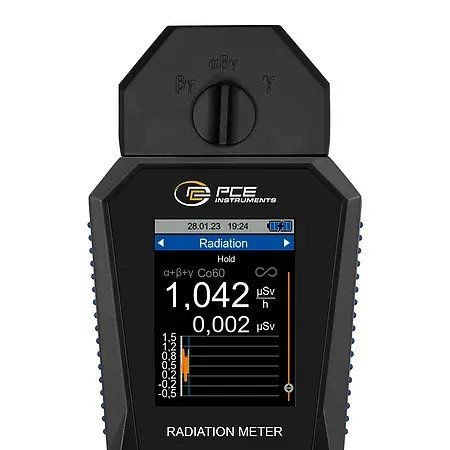 The Geiger Counter offers comprehensive measurement functions for α, β and γ radiation and is the test instrument of choice for professional radiation measurements. With the ability to precisely record the accumulated radiation dose and count the radiation in both cps (counts per second) and cpm (counts per minute), the Geiger Counter provides accurate and reliable measurement data at all times. The integrated data logger with 32 GB memory saves the measured values and allows them to be analysed in detail. The measurement history is shown graphically on the TFT colour display. Individual alarm limits can also be set in the Geiger Counter: a warning message appears if a certain radiation value or a defined radiation dose is exceeded.
