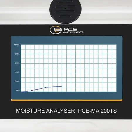 The analysis scale has a measuring range of 0 ... 100% absolute humidity. The analysis scale is operated via the 5" large touchscreen. To measure the moisture content with the analysis scale, a sample is evenly distributed on the sample pan. The sample pan is then placed and sealed in the analysis scale. After setting all parameters, the analysis scale begins the measurement.