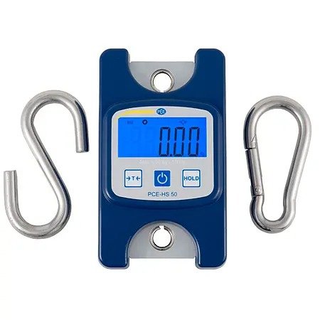 PCE-HS 50N is an affordable digital hanging scale, crane scale, weighing hook or electronic balance that offers quick, easy and accurate weighing of large objects, animals, fish and game. Simply mount the item to be weighed to the hook or snap hook (both hooks are included).