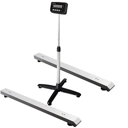 Each of the two weighing beams can be transported individually. A handle and rollers make it possible to simply pull the pallet beam behind you and place it at the desired location. The cable connections are made using plugs and can be quickly removed for transport. The connection cable between the two weighing beams is 2 m long, the cable to the display unit is 5 m long.